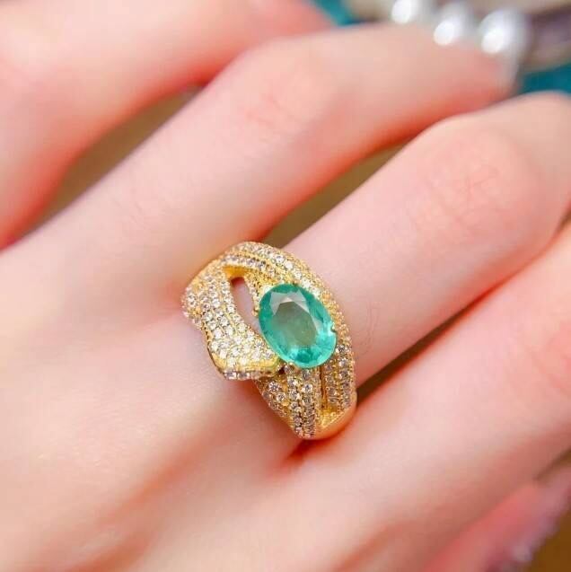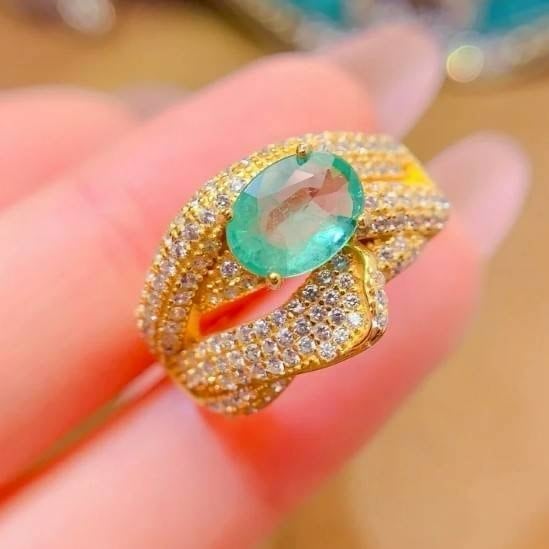 鮮やかなグリーンが美しい、天然エメラルドをあしらったリングです。
