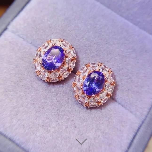 合計約3カラットのタンザナイトが耳元で上品に輝き、光の角度によってブルーやパープルに表情を変える姿は、まるで神秘的な夜空を映し出すかのよう。