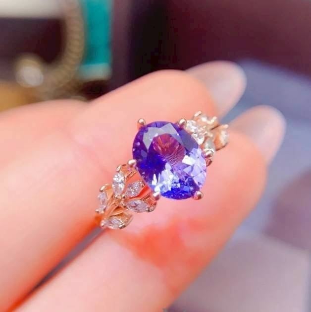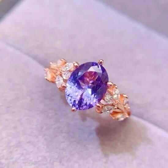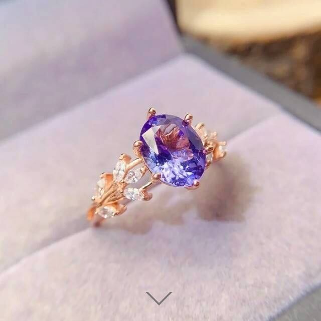 神秘的なブルーとパープルのグラデーションが魅力の天然タンザナイトをあしらったリングです。